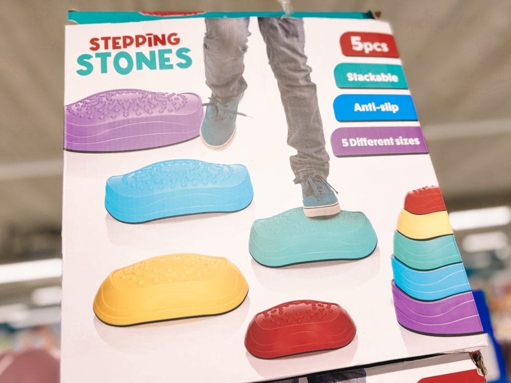 Tot voor kort waren stapelstenen een dure aangelegenheid, maar gelukkig voor onze portemonnees zijn er tegenwoordig ook goedkopere varianten te vinden. Deze van de Action zijn hier het perfecte voorbeeld van. Wij kochten destijds stapelstenen voor Floris om te oefenen met zijn balans. Hier worden ze inmiddels niet meer voor gebruikt, maar ze worden nog wel gebruikt voor een parcours en opgestapeld worden ze gebruikt als krukje.