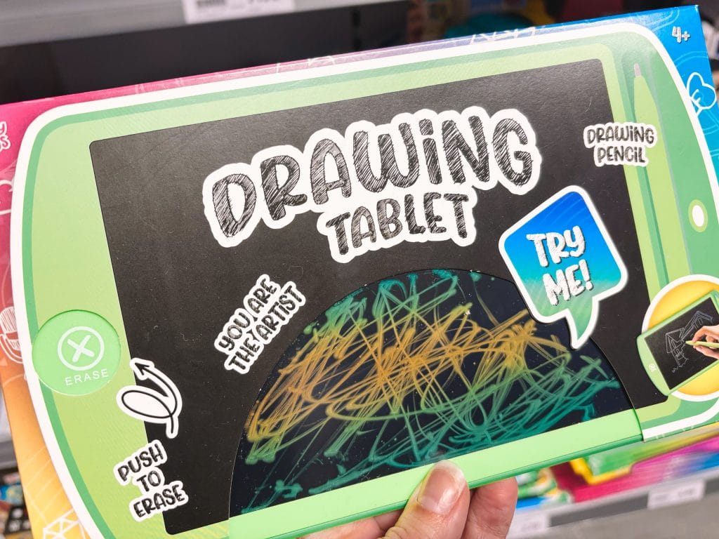 Deze leuke tekentablet neem ik mee voor als we met de auto naar Parijs gaan over een tijdje. Dit is namelijk perfect om mee te nemen tijdens een lange autorit. Is de tekening af, dan druk je op de knop om deze te wissen en opnieuw te beginnen. Ideaal!