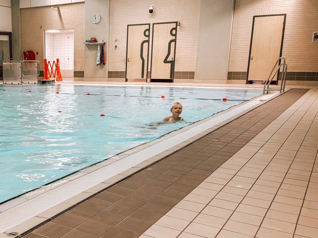 - Om 7:00 in het zwembad…