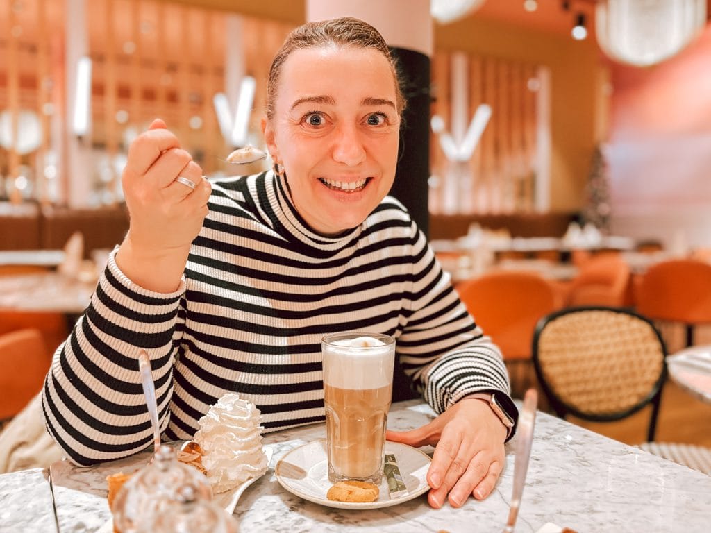 5. Shoppen bij Outlet Roosendaal, wat een geluk! Tussendoor pauzeren we met koffie, warme chocolademelk en een taartje.